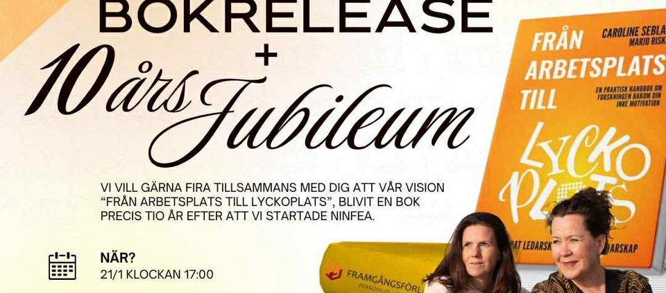 Efter succé i Stockholm har turen kommit till Skåne. Onsdag den 21 januari gästas vi på Gårdskontoret av Marika Jonmar och Caroline Cederblad på Ninfea Ledarskapsutveckling som bjuder in till en helkväll med firande, mingel och samtal i laanseringen av deras nya bok Från arbetsplats till lyckoplats.
